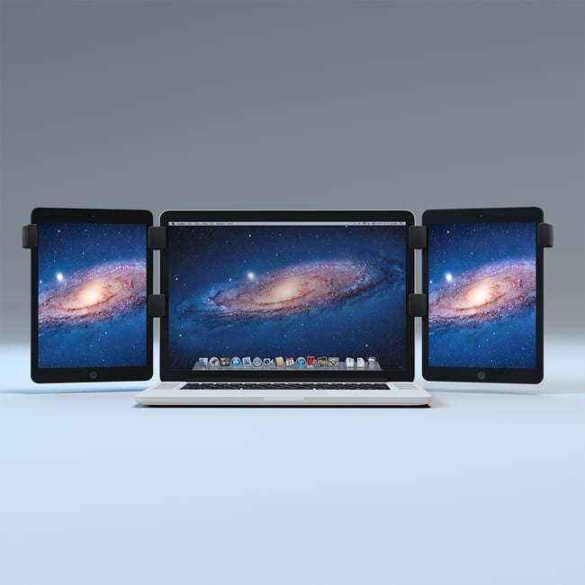 Add More Screens to Your Laptop, With Devices You Already Own! This kit allows you to switch up the top mount in order to attach a tablet and phone to your laptop, or two tablets. Additionally, you can use the dual tablet mount independently from the laptop, and then hang your tablet wherever you please!